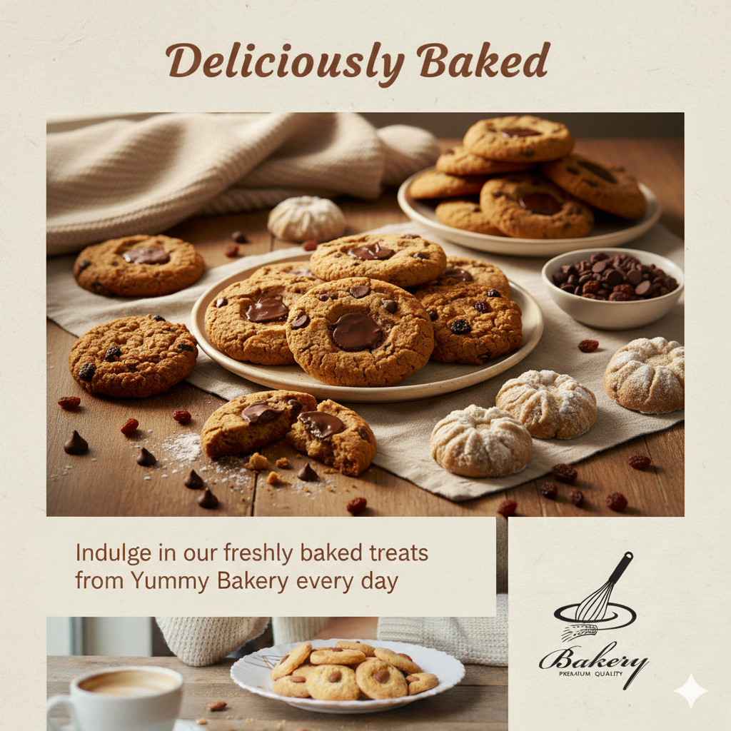 Indulge in our freshly baked treats from Yummy Bakery every day.